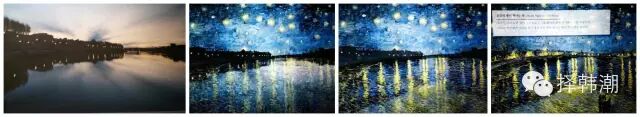 这边是梵高所画的画中实景,但是拿着那个平板电脑在图画上一扫,就能出来这个实景怎样慢慢变成梵高的画了,下面例了几个画面,看看超神奇!!