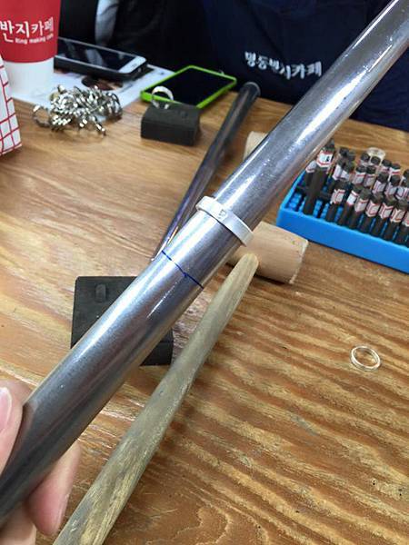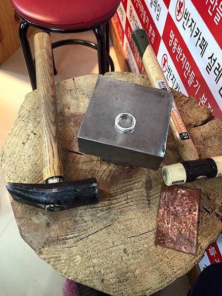 再把你剛剛燒好的戒指放上去 用照片上看到的木錘用力打